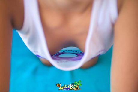 Lily Koh: Asian Lily rubs wet pussy then exposes tiny dark nipples