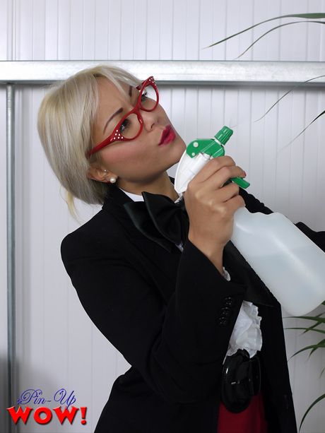 Asian Sluts: Asian mature amateur with glasses strips and shows her hairy cunt