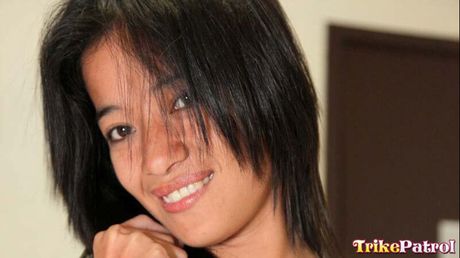 Trike Patrol: Asian teen Ellah strips and shows her amazing melons and pierced pussy