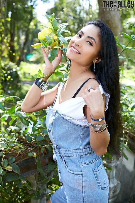 The Black Alley: Asian teen Leah strips and shows her hairy pussy up close in a solo