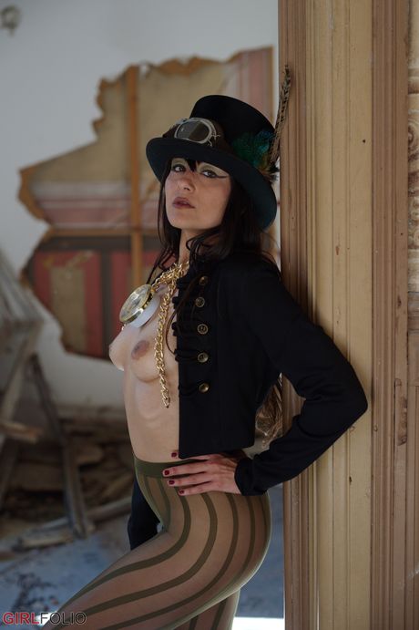 Girl Folio: Asian teen Sophia Jade strips to her pantyhose and shows her big juggs