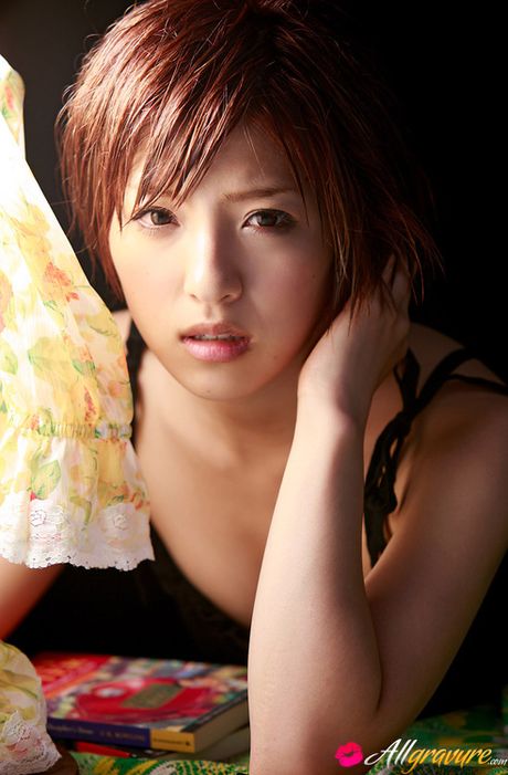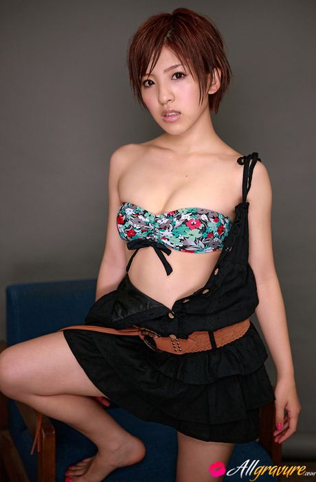 All Gravure: Erina Matsui Asian racy babe shows juicy titties in colorful bra