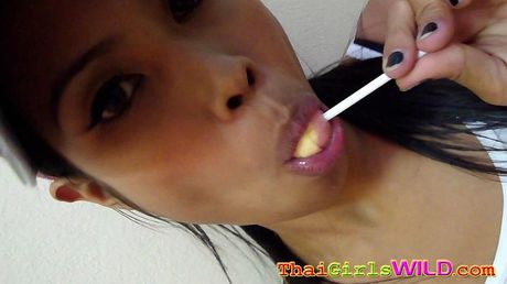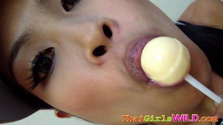 Thai Girls Wild: Hot THai babe named Ni licks and sucks a lolipop to tease us