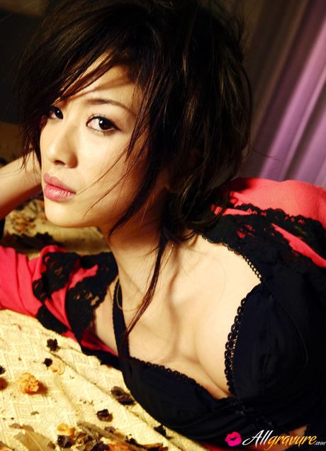 All Gravure: Incredibly sensual gravure idol babe seduces in black lingerie