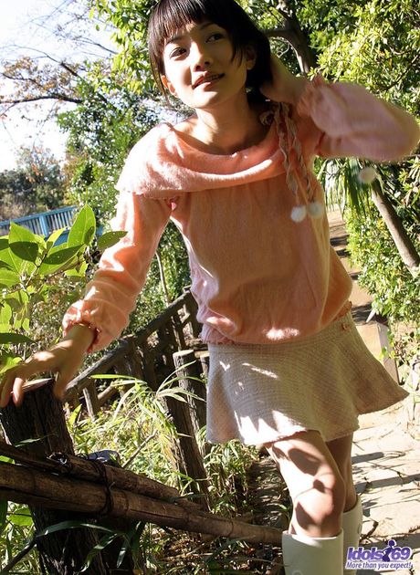 Idols 69: Naughty Nana shyly shows off her white panties as she lifts her mini skirt high