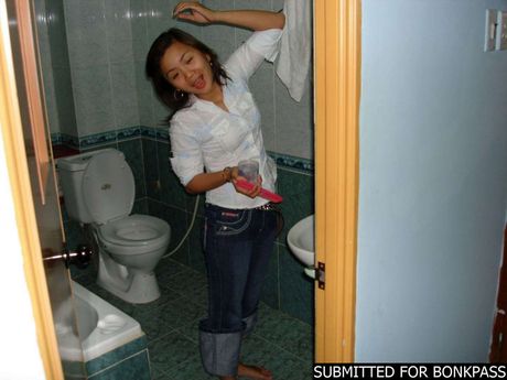 Bonk My Thai: Plain looking amateur Thai girl showing her hairy pussy