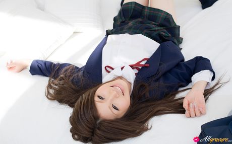 All Gravure: Risa Aika Asian with cute smile shows crack in thong under skirt