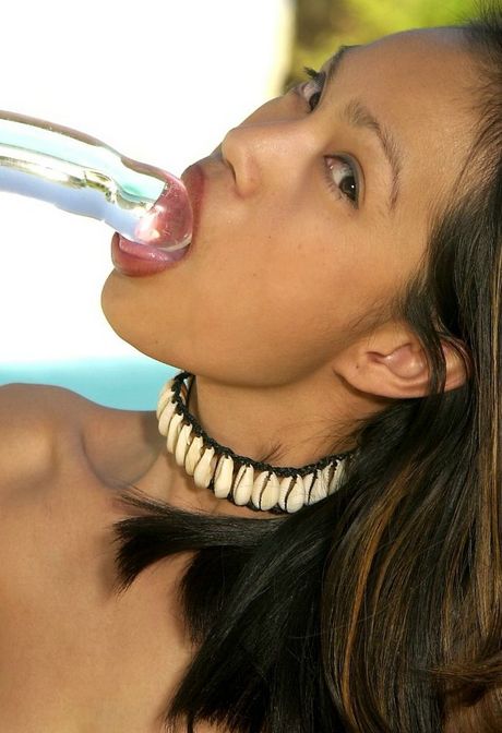 Lavender Tabby: Sexy Asian girl playing with her glass dildo