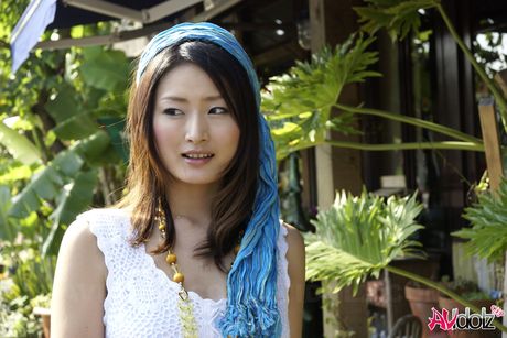 AV Idolz: Sexy Japanese babe Risa strips and shows her tiny tits and pussy on the beach
