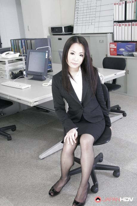 Japan HDV: Sexy japanese brunette milf Ai Mizushima in fancy skirt shows her butt in office