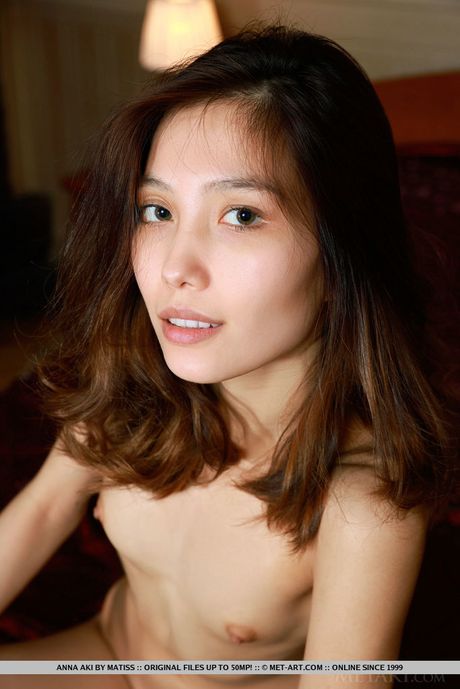 Met Art: Skinny Asian teen Anna Aki strips and shows her tiny tits and pussy